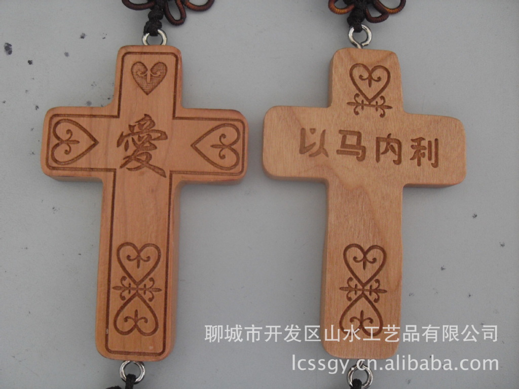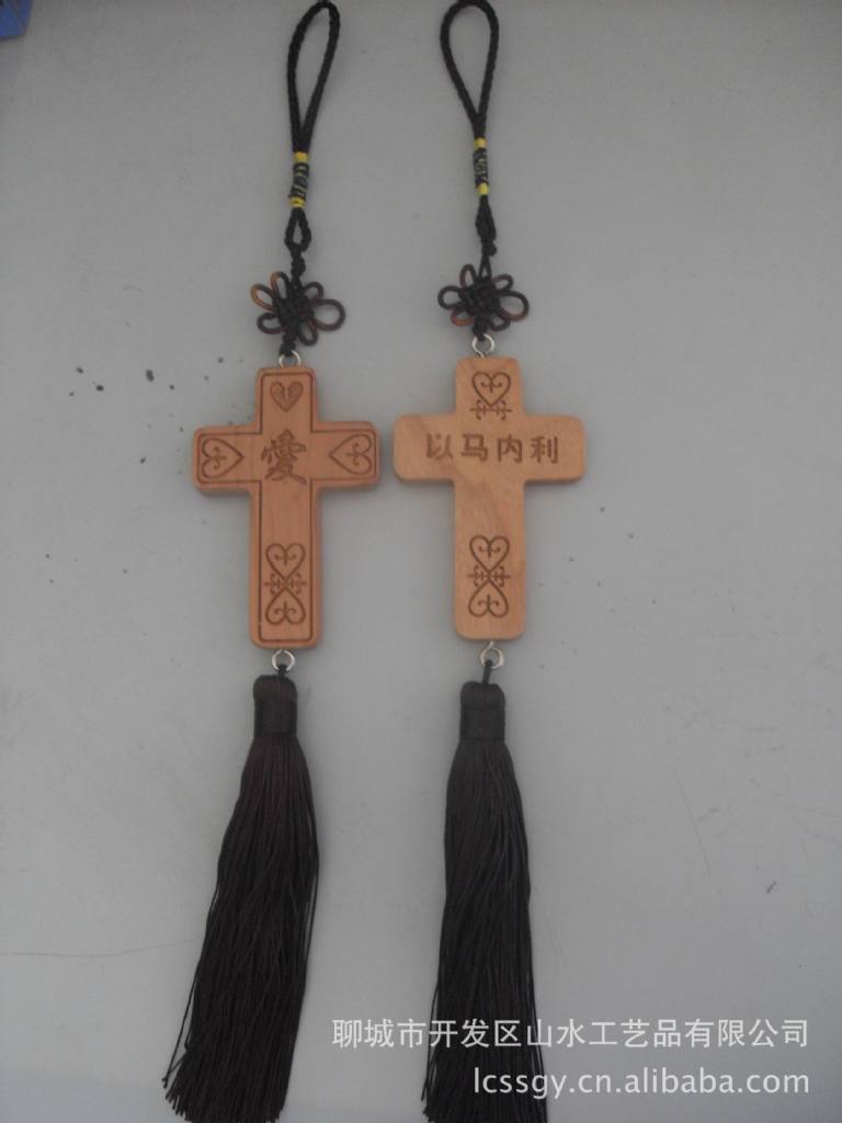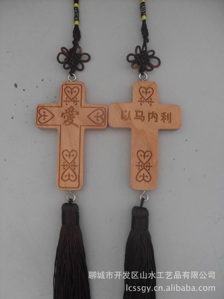 厂家批发木制十字架车挂件 宗教礼品十字架 十字架木制雕刻