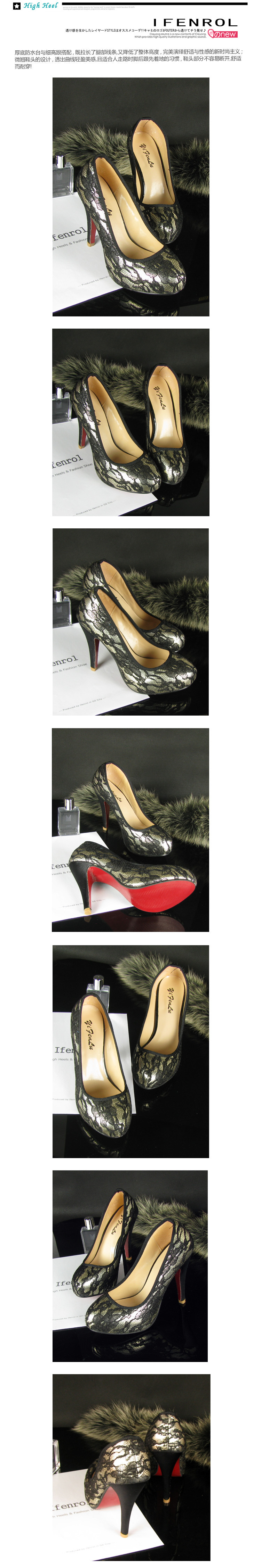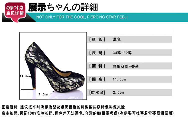 2013新款蕾丝时尚防水台超高跟鞋圆头黑色女士单鞋子205