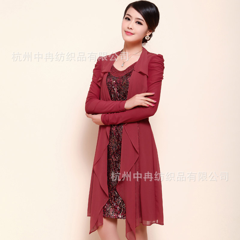 KERONEY8360高档长袖连衣裙 四排串珠亮片花纹飘逸大气连衣裙