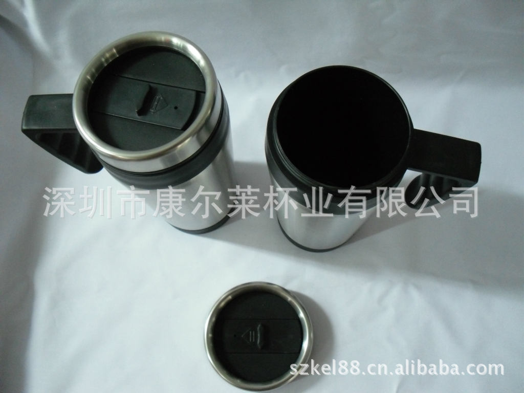 厂家供应 内塑料外不锈钢带手柄汽车杯 汽车杯 不锈钢杯 杯子