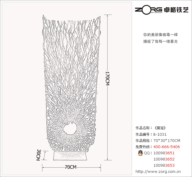 ZORG卓格铁艺B1031号艺术品《蔓延》金属工艺品摆饰
