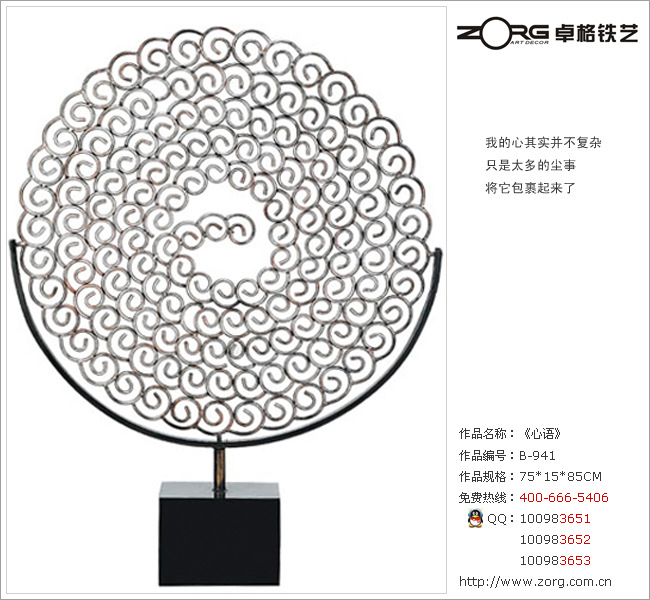 ZORG卓格铁艺B941号艺术品《心语》金属工艺品摆件