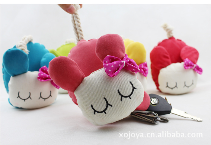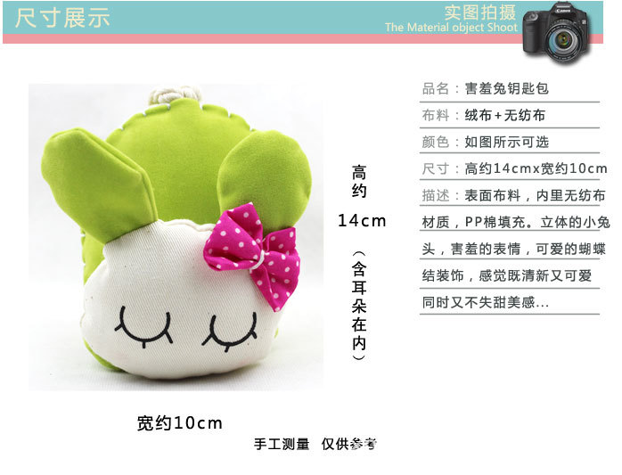 创意可爱韩版手工 绒布害羞兔抽拉式 汽车钥匙扣/钥匙包