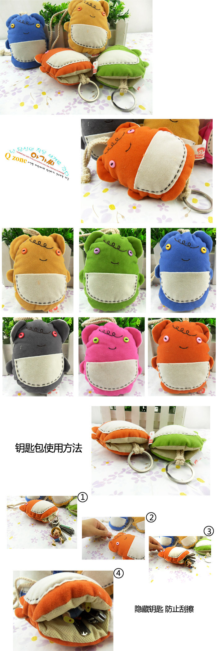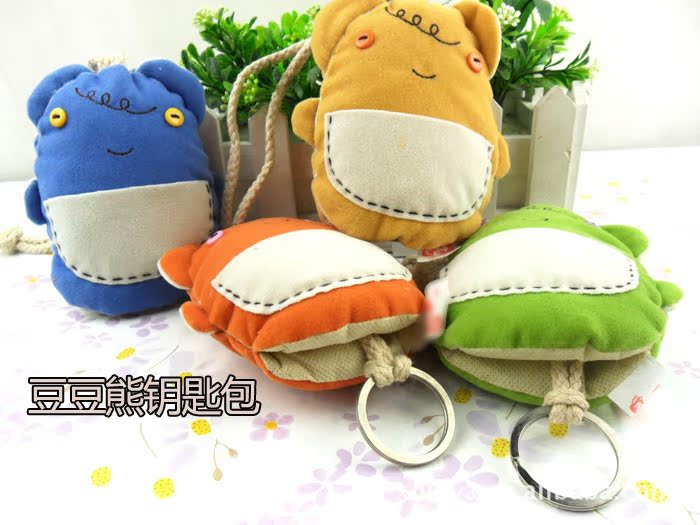 C616 男女汽车钥匙扣可爱卡通抽拉式韩版豆豆熊抽拉钥匙包