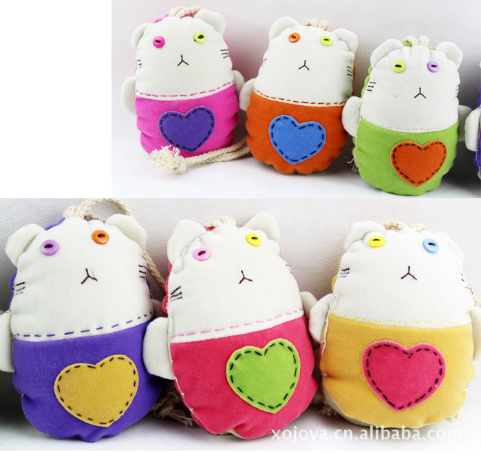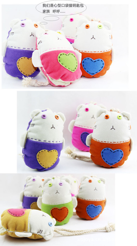 YS07男女汽车钥匙扣可爱卡通抽拉式韩版心型口袋猫抽拉钥匙包