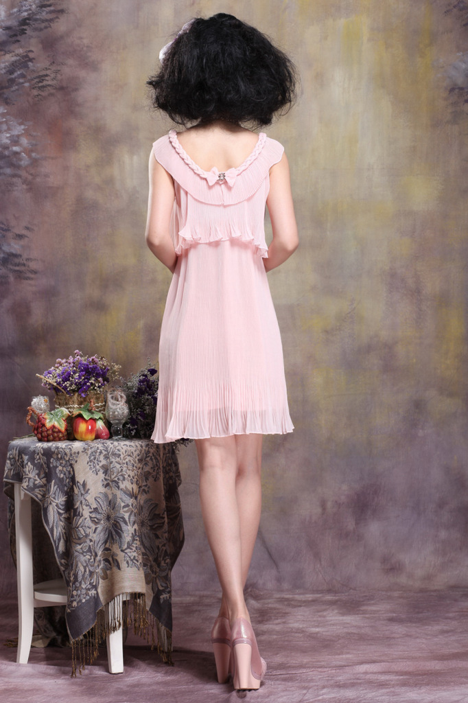 百褶裙 褶皱连身裙 荷叶大领雪纺裙子 气质白领连衣裙