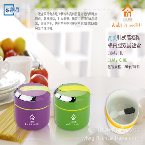 供应 几美家居-陶瓷双层饭盒,可按客户要求印制LOGO