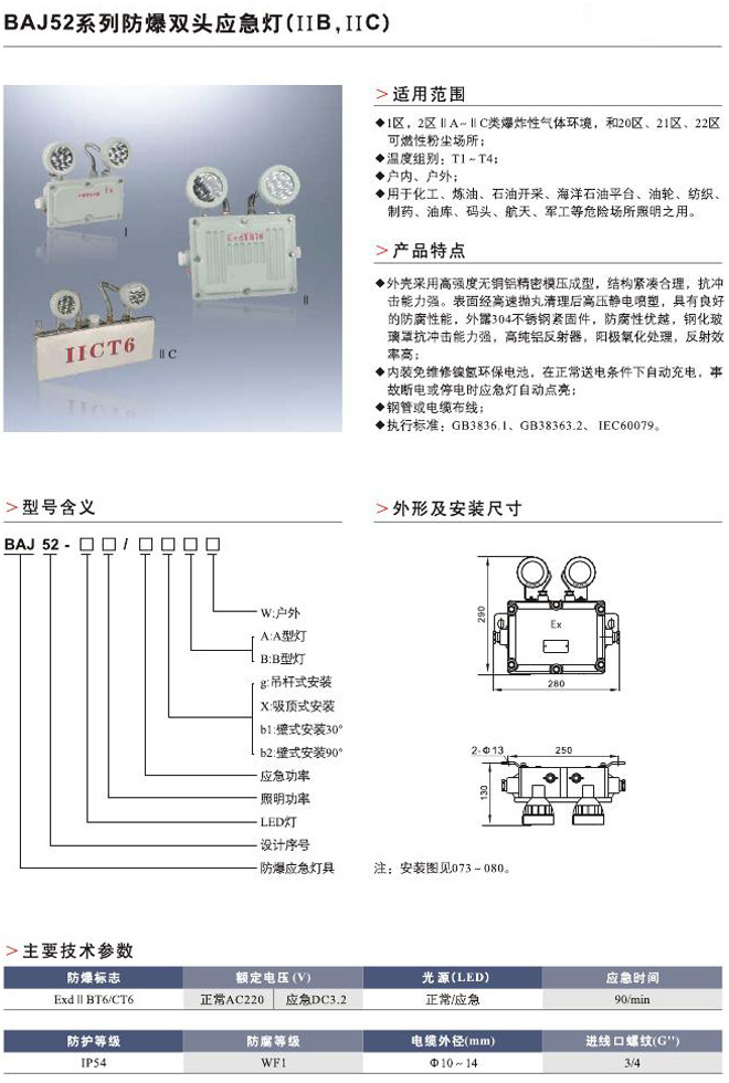 雨明防爆 BAJ52系列防爆双头应急灯(ⅡB,ⅡC)