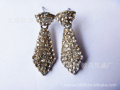 义乌饰品批发定做 满钻领结 领带 婚庆耳环