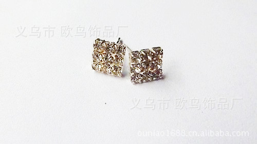 日韩热卖耳钉 方块满钻耳钉 时尚饰品