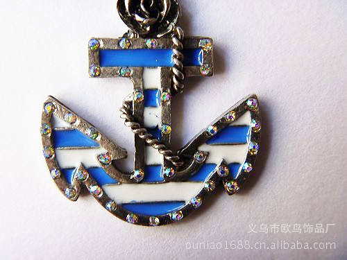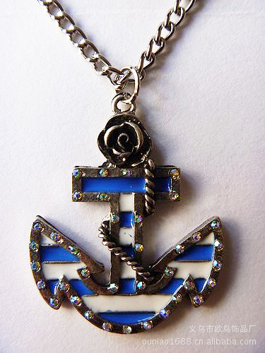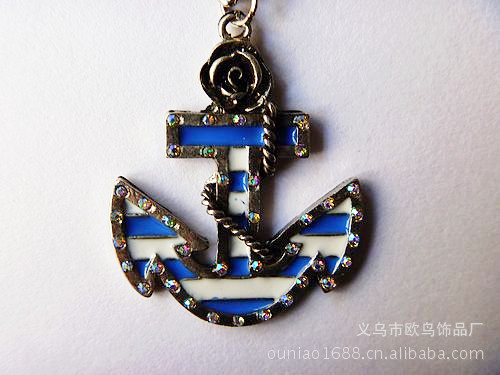 玫瑰 链条 蓝白条纹 海盗船滴油项链 欧美项链