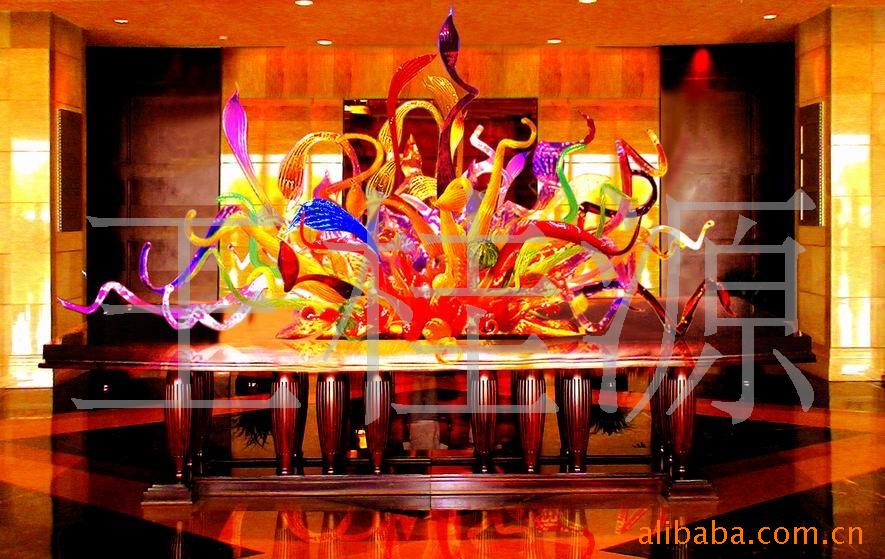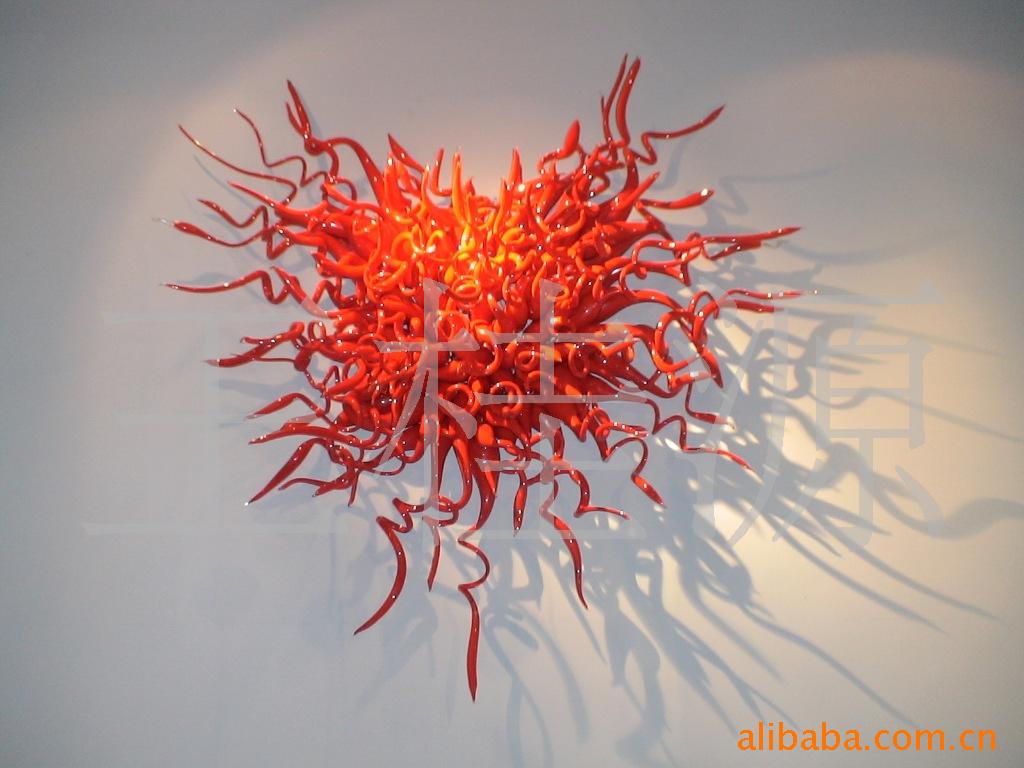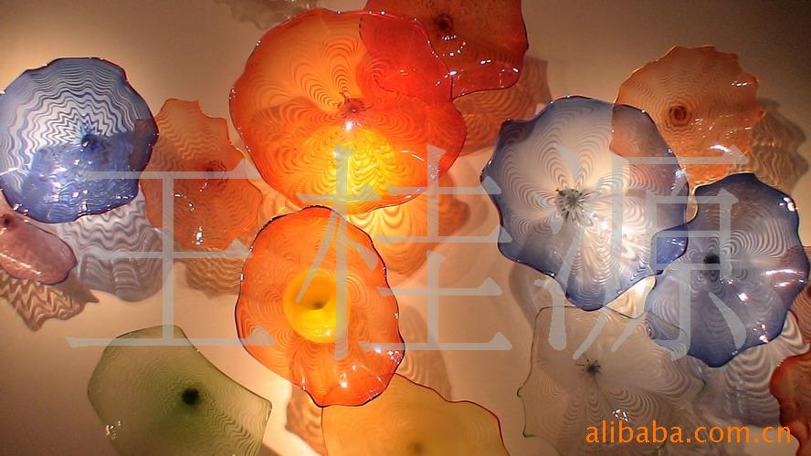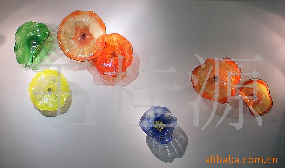 吹制艺术琉璃荷叶壁饰 琉璃工艺品 七彩壁饰荷叶盘 酒店艺术