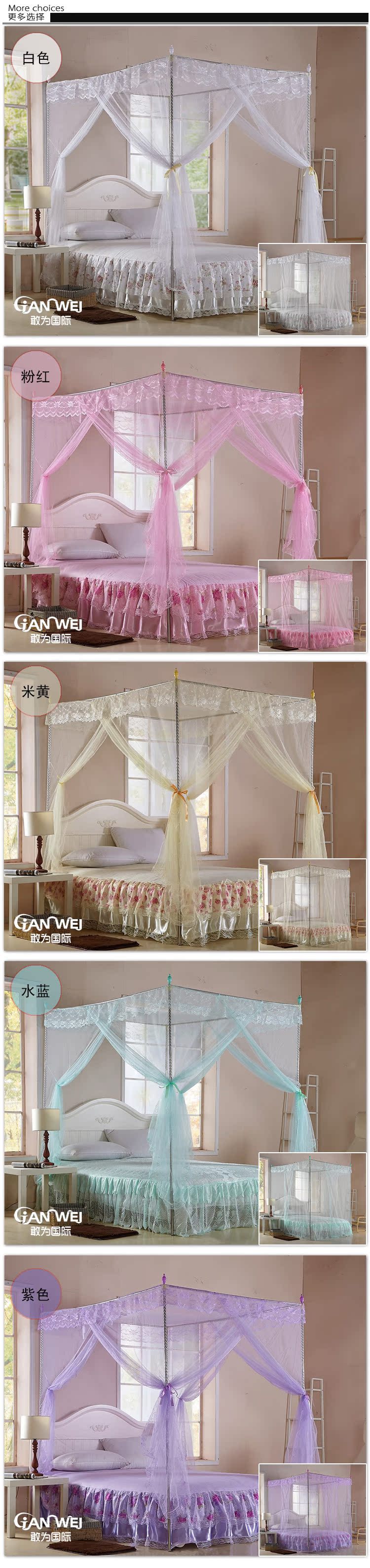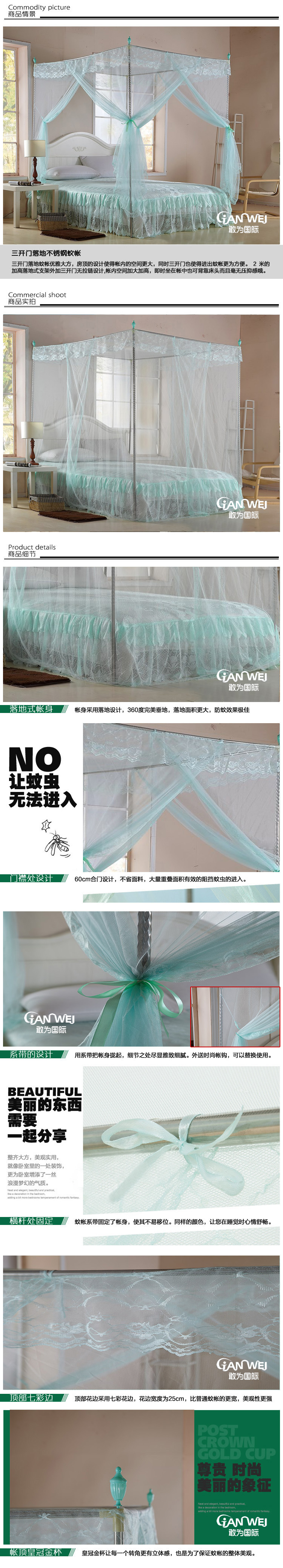 床上用品 蚊帐批发 典雅落地式不锈钢支架宫廷蚊帐 1个起批