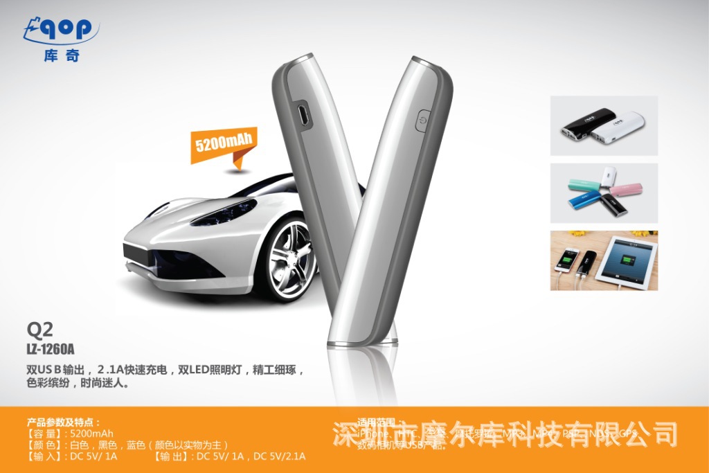 力众双节移动电源Q2,5200毫安时OEM,ODM礼品定制批发