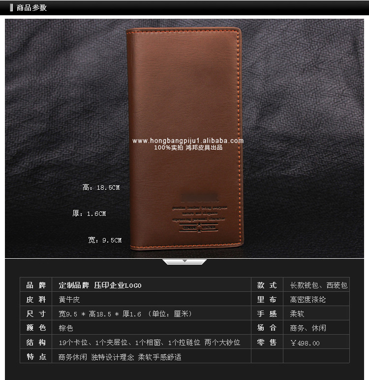 厂家定做 热款男士真皮钱包 男式长款手包 西装钱夹 定制企业LOGO