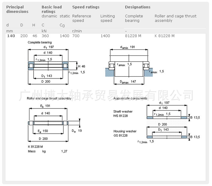 进口轴承 正品81228M轴承 推力圆柱滚子轴承-SKF轴承供货商