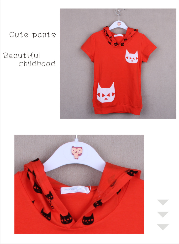 moodrose2013夏装新款女童纯棉韩版童装带帽长T 恤 广东批发8021