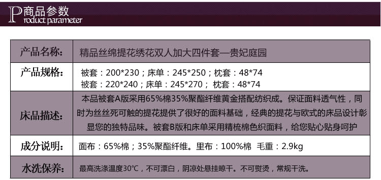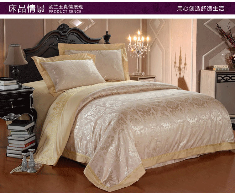 紫兰玉家纺 厂家直销 精品丝绵提花绣花双人加大四件套—贵妃庭园