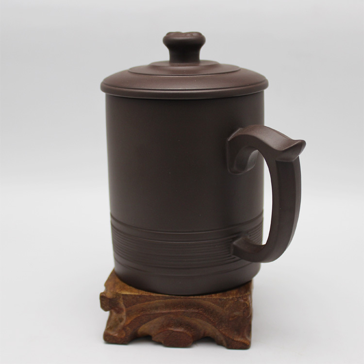紫来顺 手拉杯宜兴盖杯正品 紫泥低腰线盖杯 400cc 批发