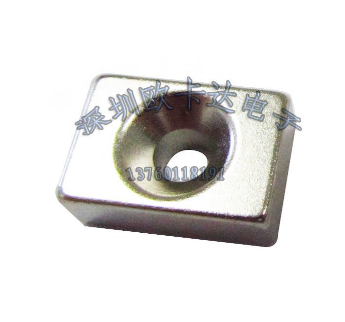 强磁铁 磁钢 长方形带螺丝沉孔OKD22X15X8 沉孔12 内孔6毫米 镀镍