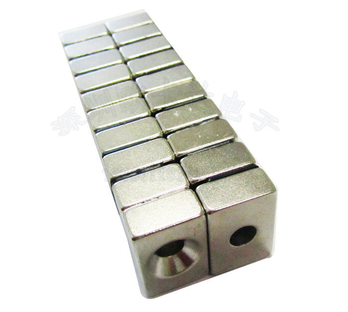 强磁铁 磁钢 长方形带螺丝沉孔OKD20X15X4 沉孔8内孔4 毫米 镀镍