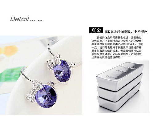 网店货源 饰品批发绚丽小巧合金镀真金奥地利水晶耳钉--甜心米奇