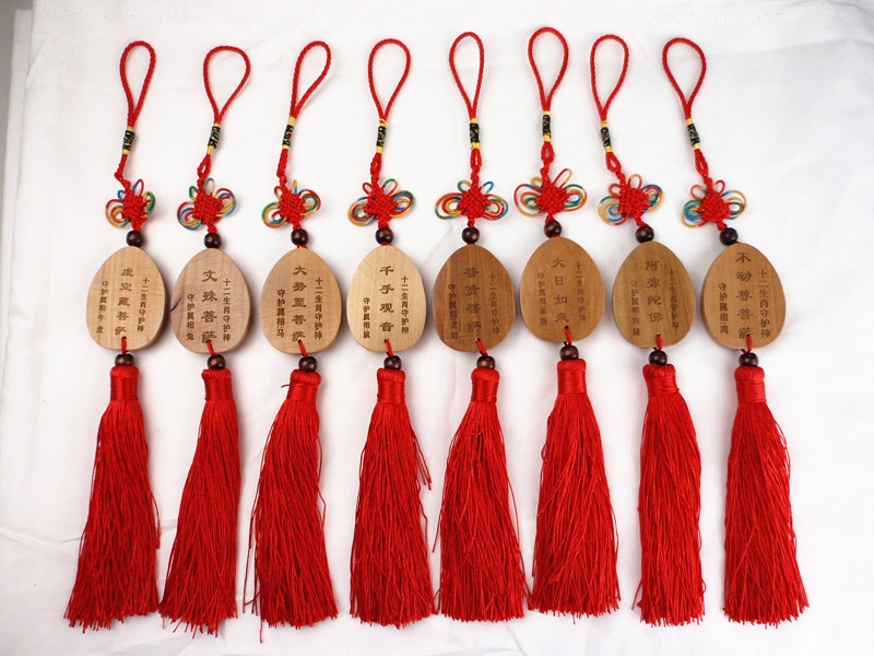 厂家供应桃木车挂 生肖守护神精雕汽车挂件 不动尊菩萨车挂