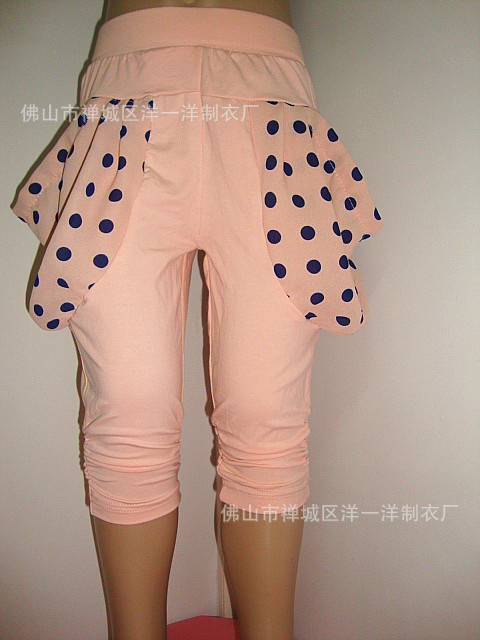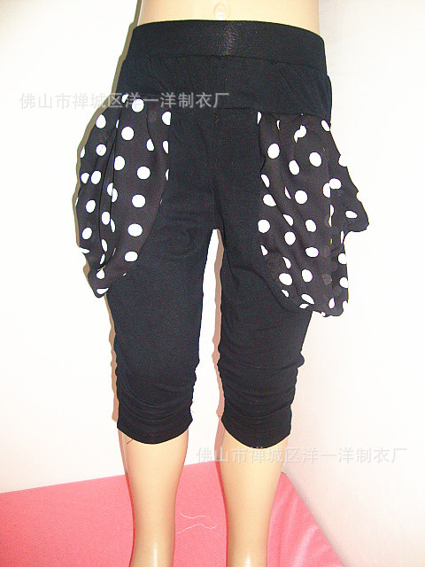2013夏新款口袋拼接雪纺针织七分裤 哈伦裤 打底裤