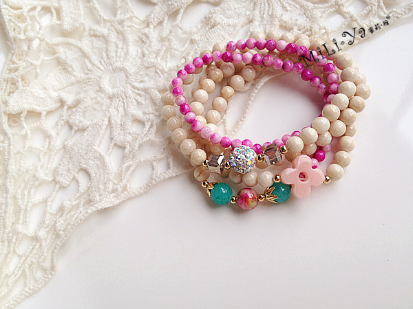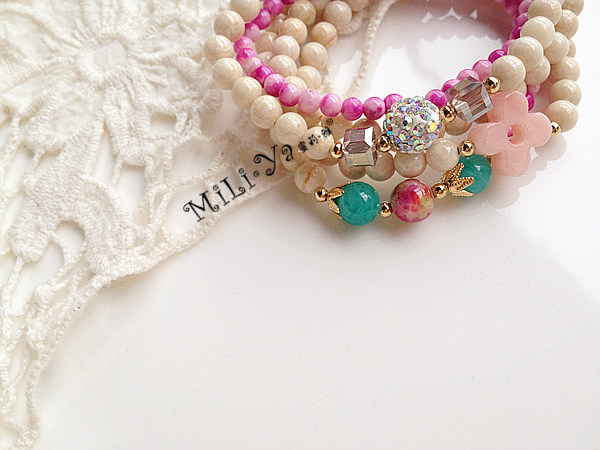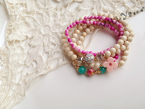 原创设计纯手工串制 天然石幸运四叶草串珠多层手链
