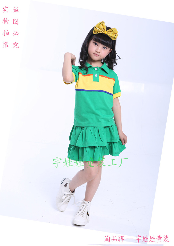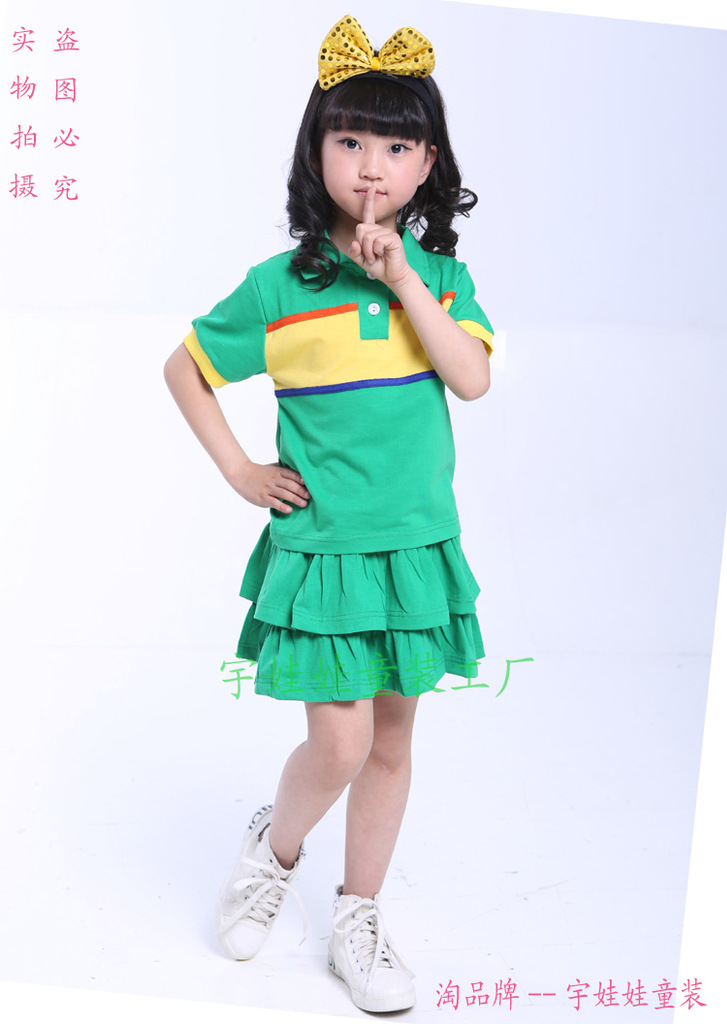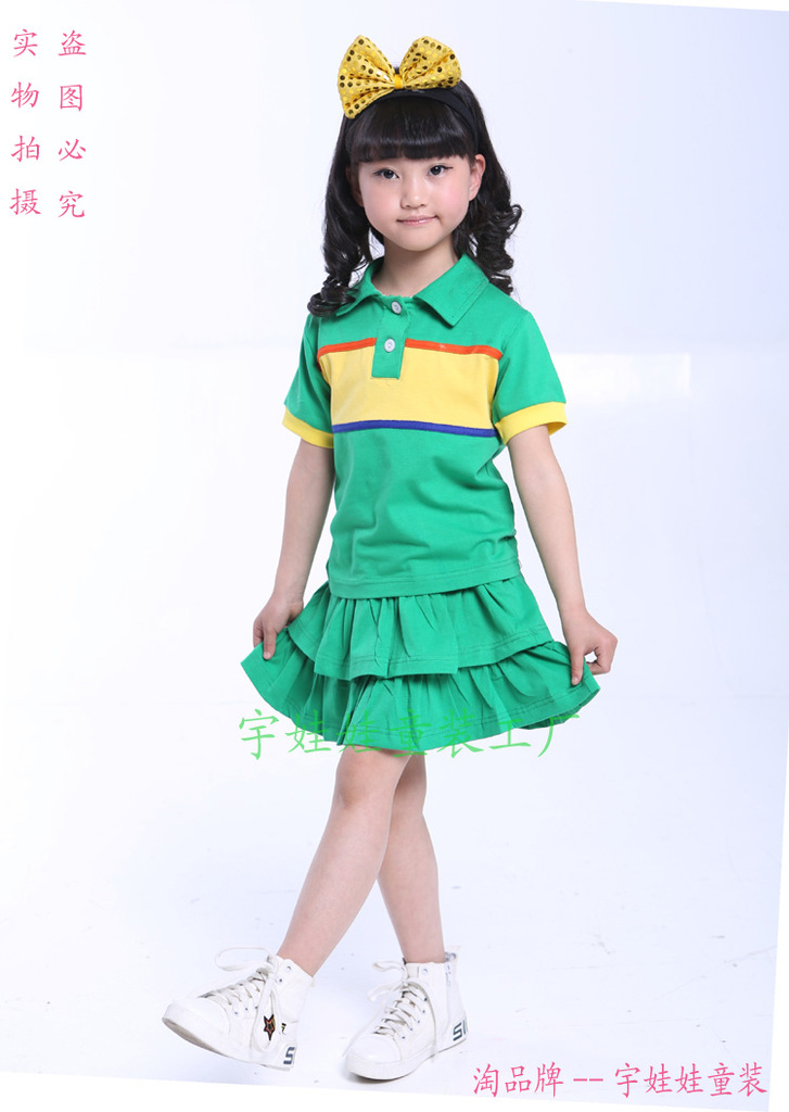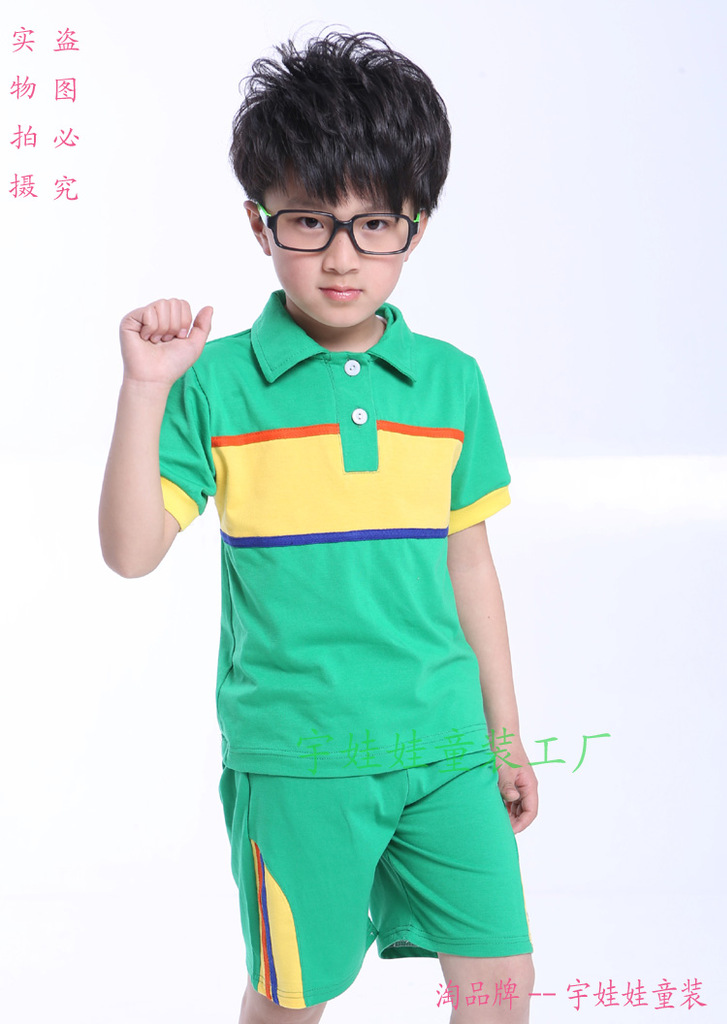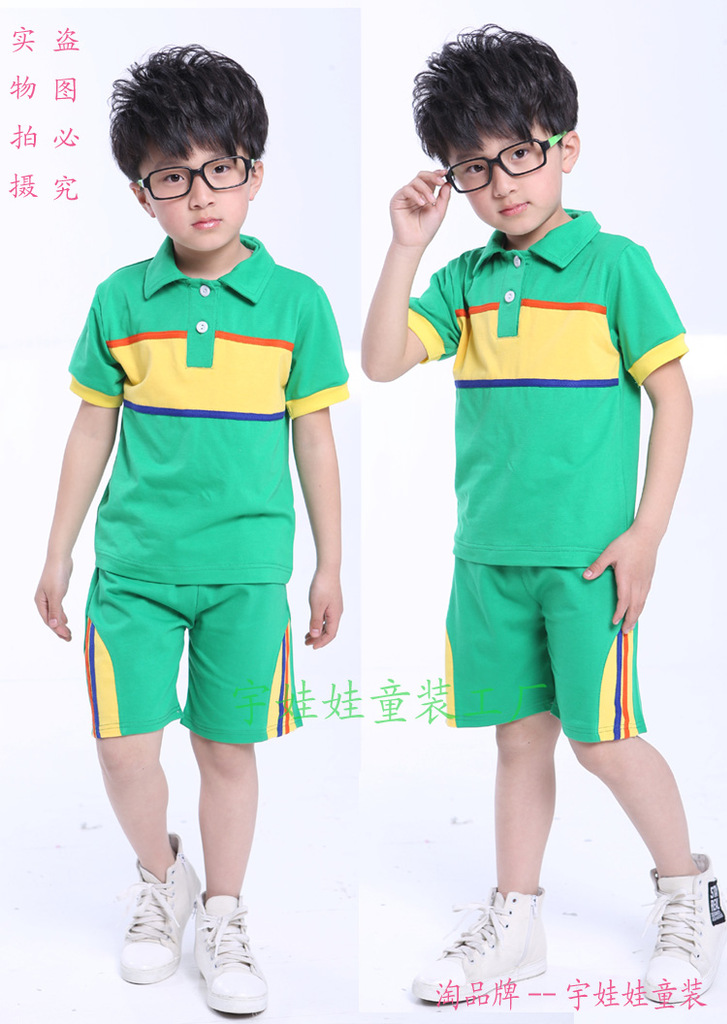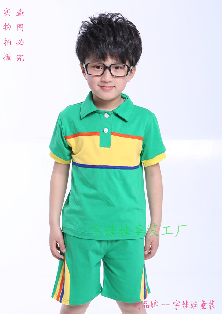 2013夏季校服新品纯棉套装绿色男生女生幼儿园服中小学生校服