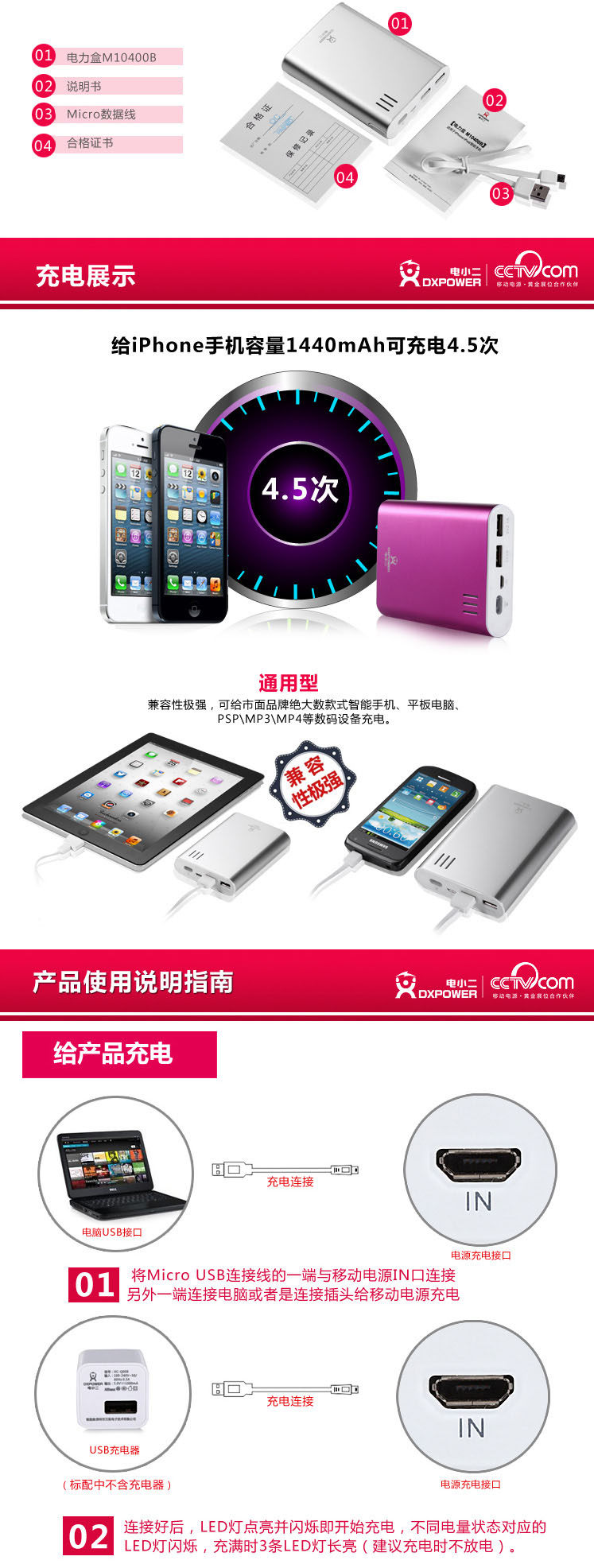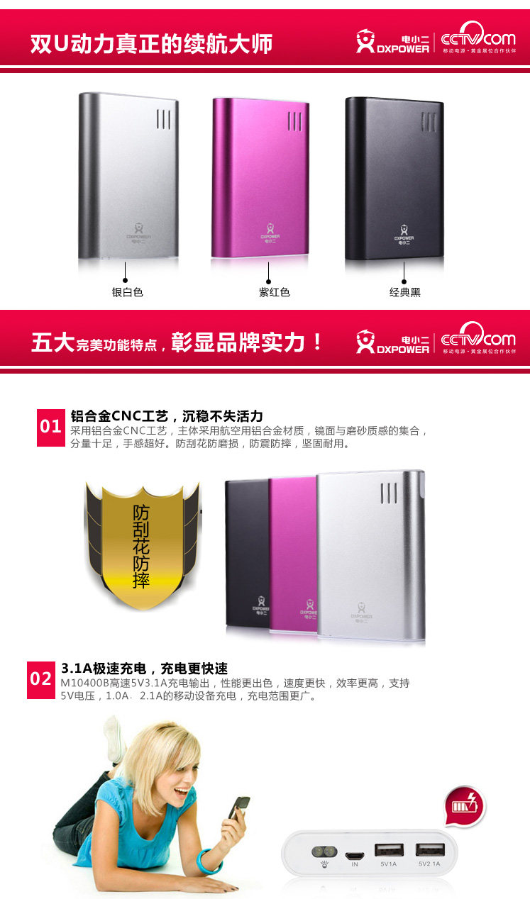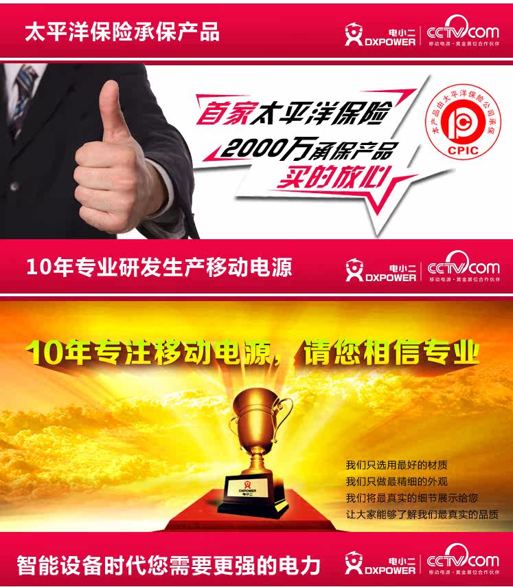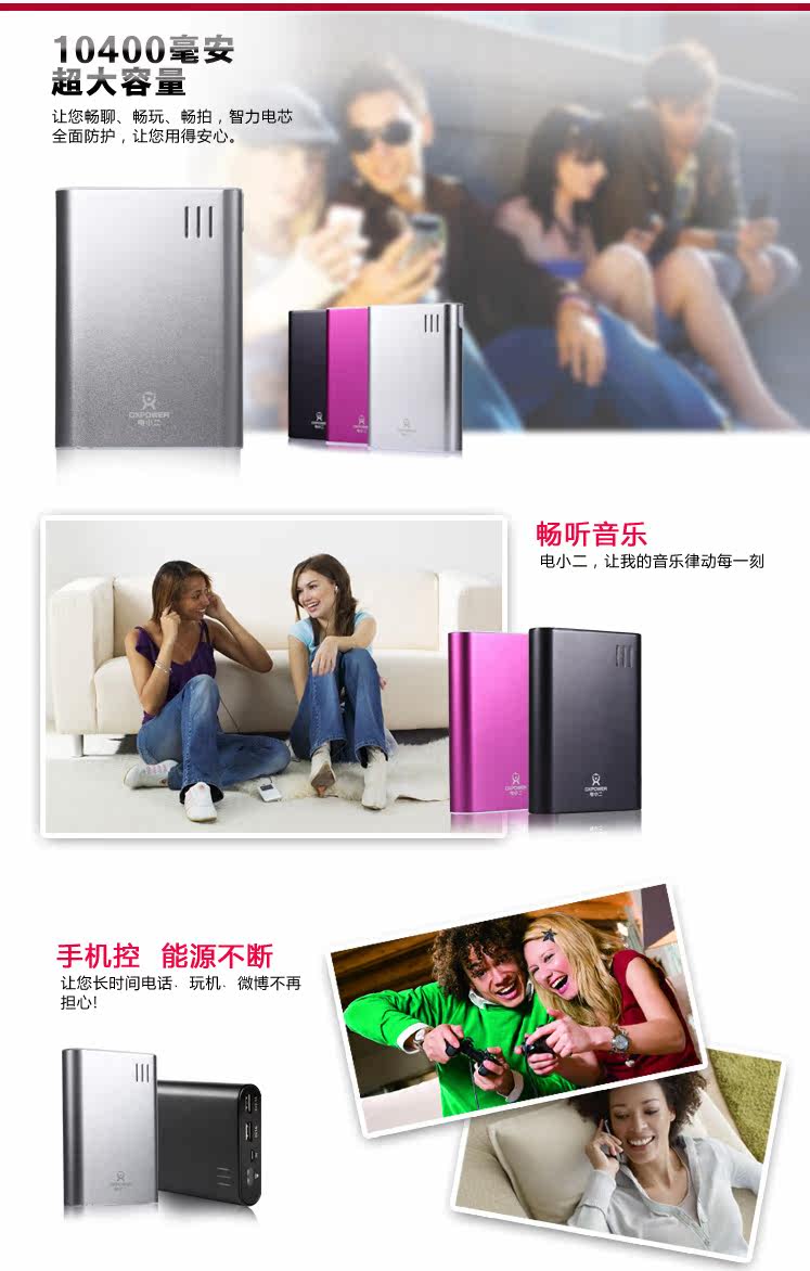电小二 移动电源 10400毫安 HTC三星小米 充电宝 IPAD 随身充