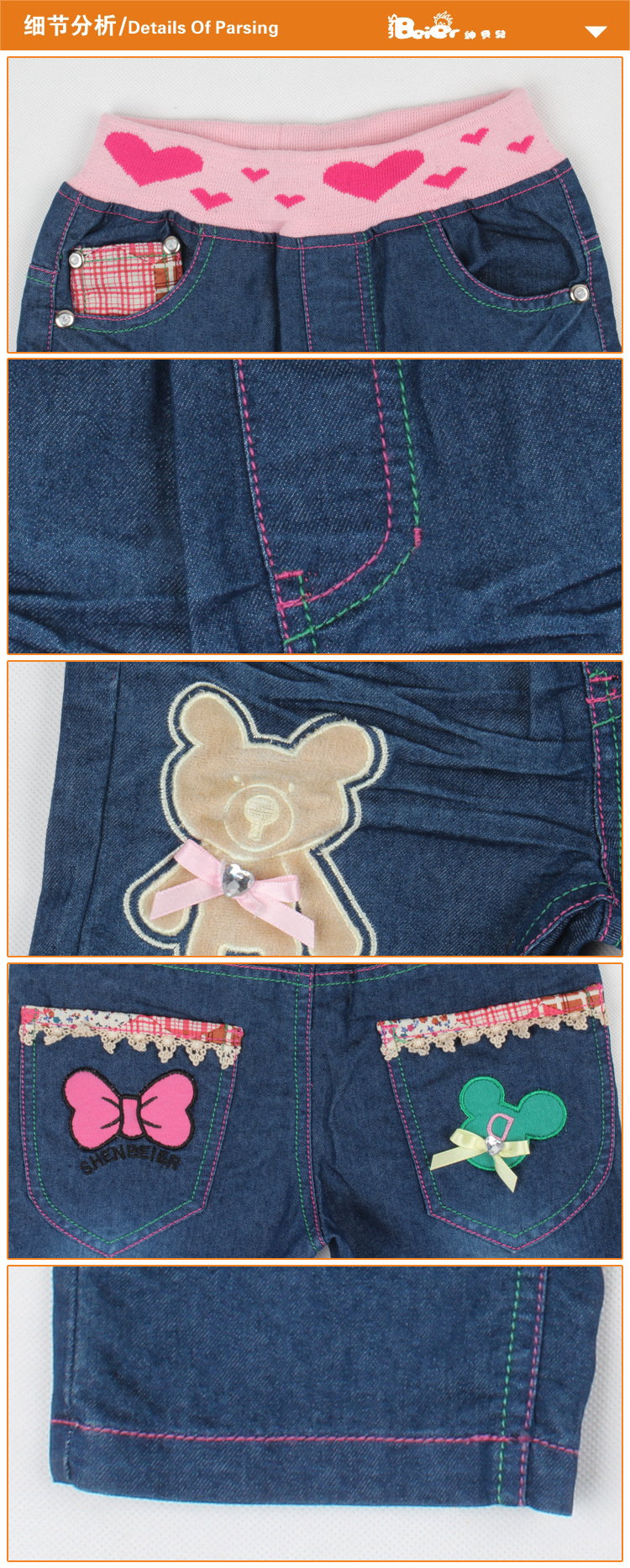 杰米杰妮童装新款夏装 女童牛仔裤五分裤小熊卡通蝴蝶结裤子J3280