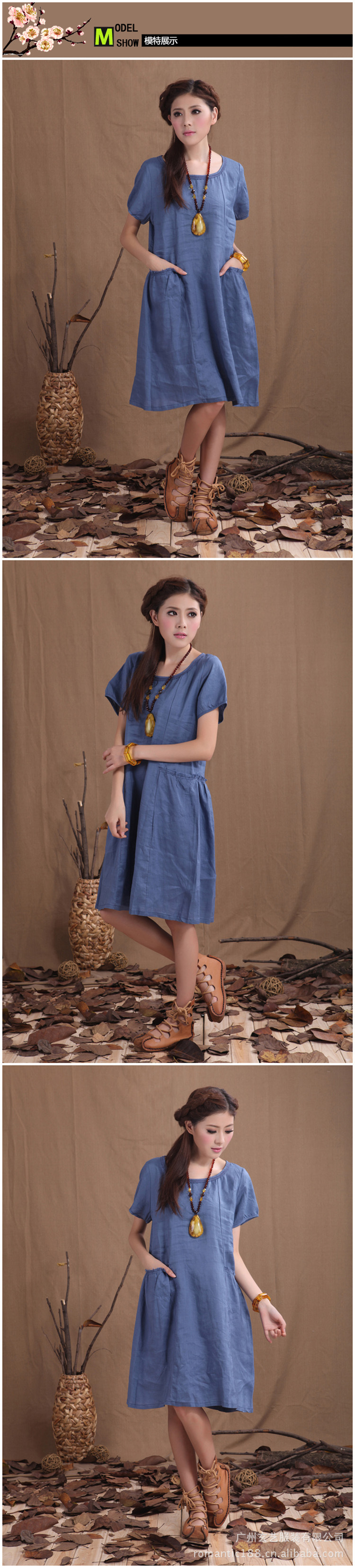 洼达蓝妮 2012夏天新款纯色100%纯亚麻 简单休闲风宽松女裙连衣裙