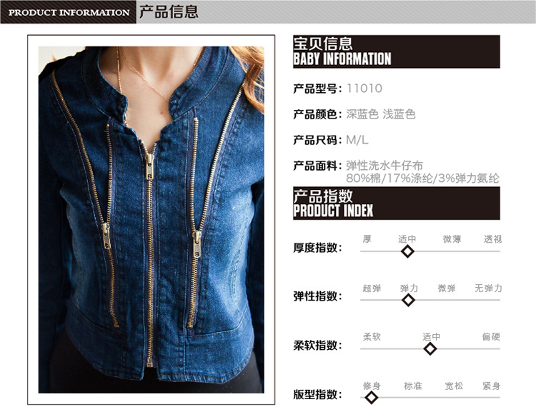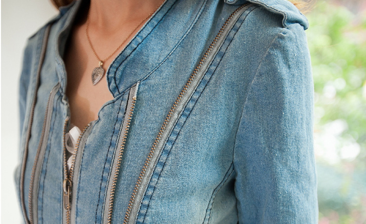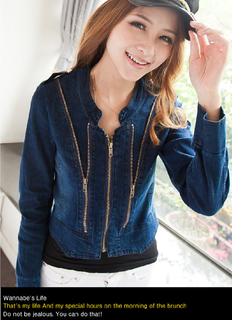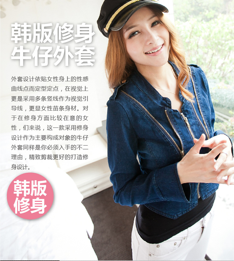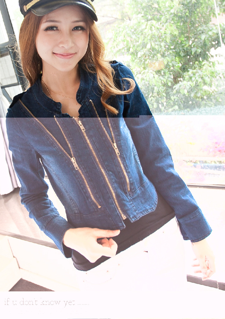 2013最新女装立领长袖拉链装饰弹力水洗牛仔衣短款牛仔外套 11010
