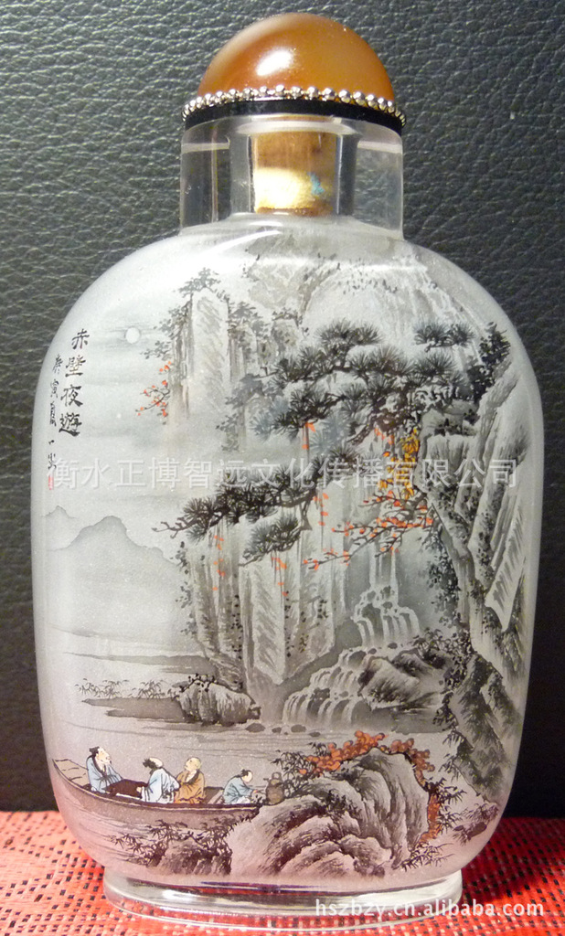 冀派内画鼻烟壶 冀派名家韩梅精品内画 赤壁夜巡