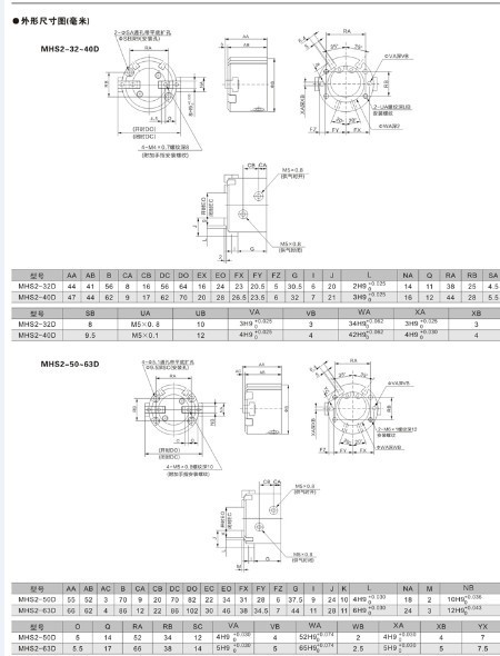 MHS2两爪气缸 MHS3三爪气缸 ,MHS4四爪气缸