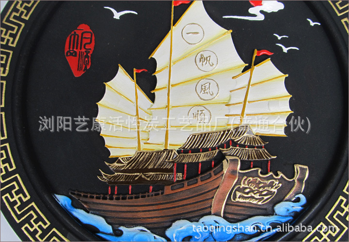 厂家直销艺康炭雕 领导商务礼品 碳雕工艺品家居饰品摆件一帆风顺