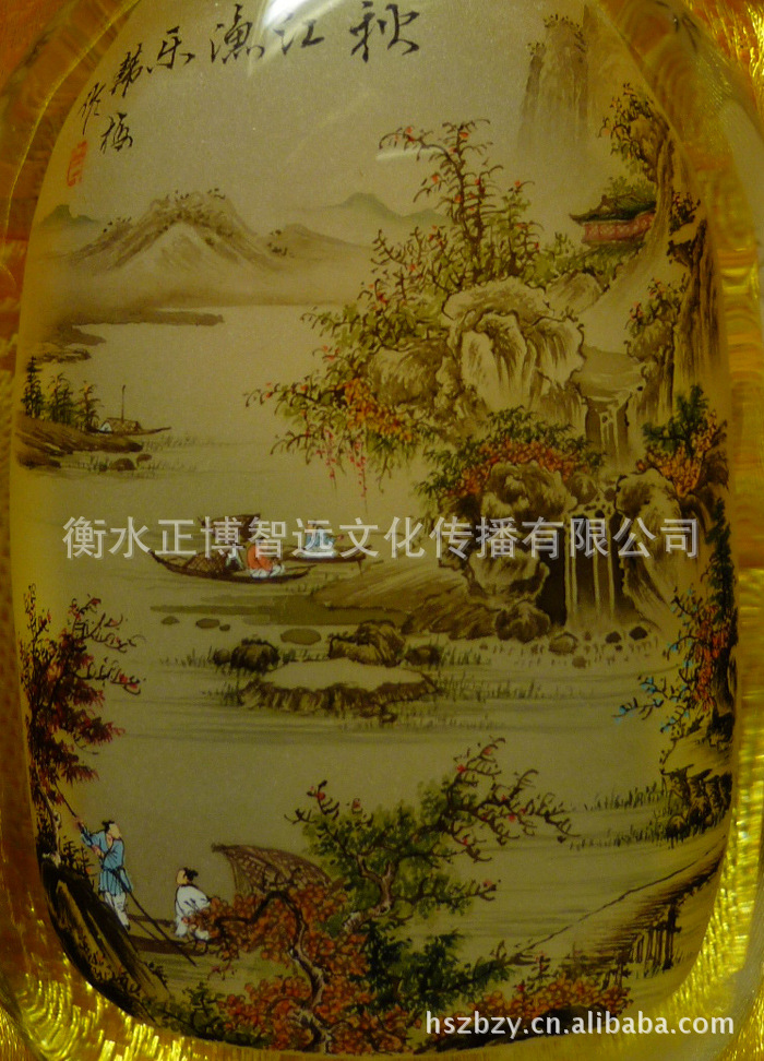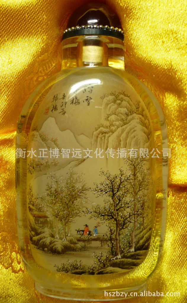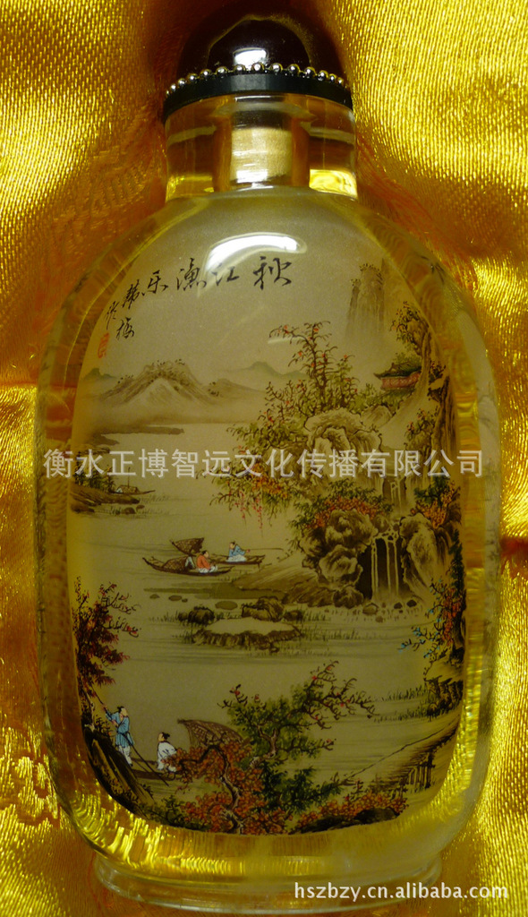 冀派内画鼻烟壶 冀派名家韩梅精品内画 秋江渔乐踏雪寻梅