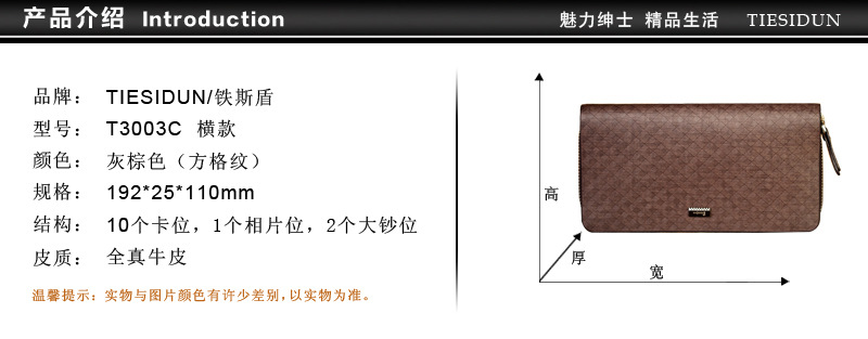 铁斯盾品牌 长款拉链包 时尚尊贵高档男士正品钱包 广州皮具厂家