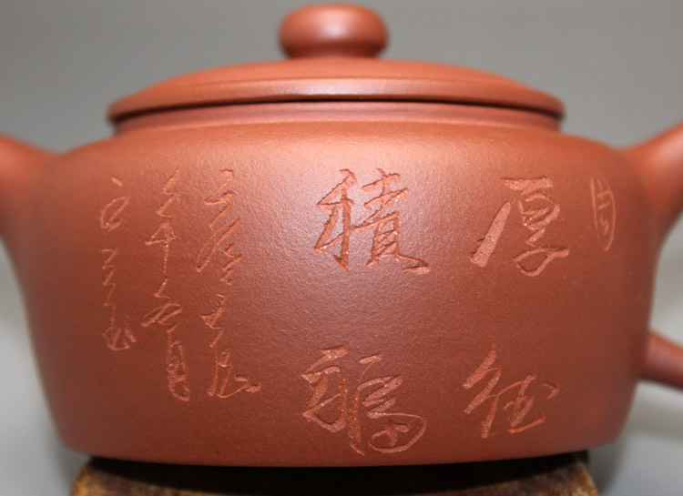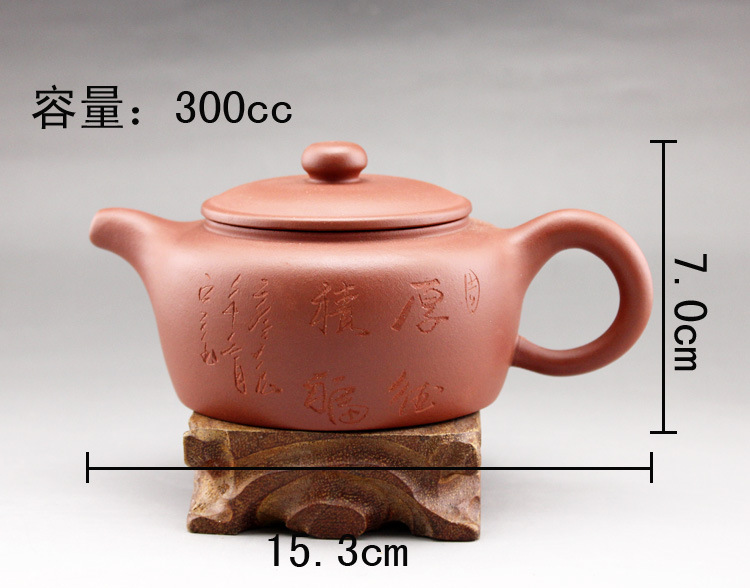 紫来顺 宜兴紫砂功夫茶壶 低身刻绘井栏 300cc 紫砂壶