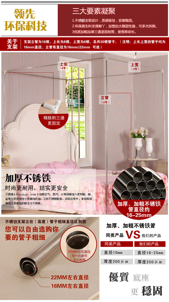 润雪床品 03款宫廷式不锈钢落地三开门无底蚊帐 厂家直销