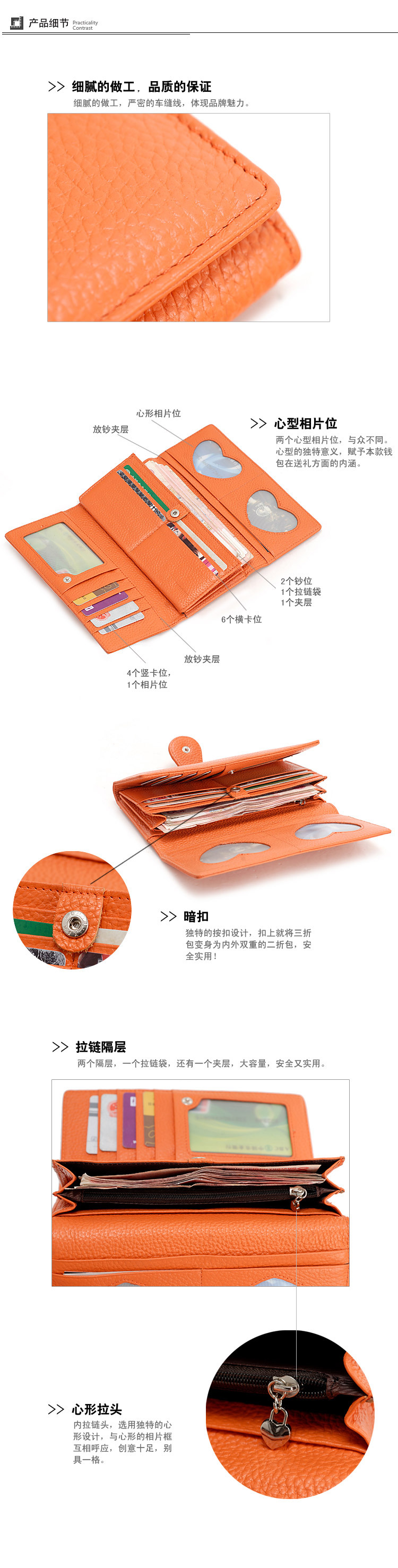 厂家批发 新款女士钱包女长款韩版可爱三折真皮钱夹皮夹