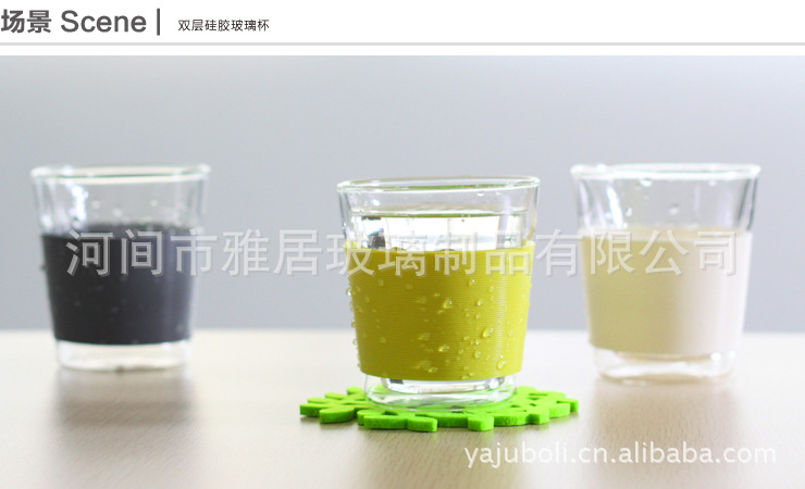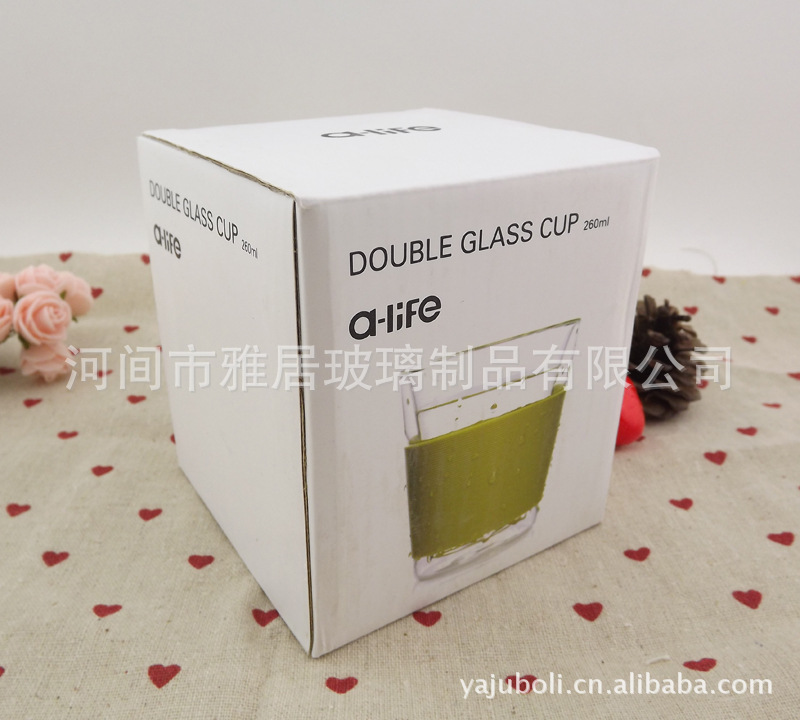 alife 创意耐热双层玻璃杯260ml 防滑硅胶套隔热杯