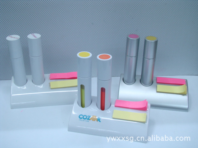 厂家直销供应四色带便签底座荧光笔套装