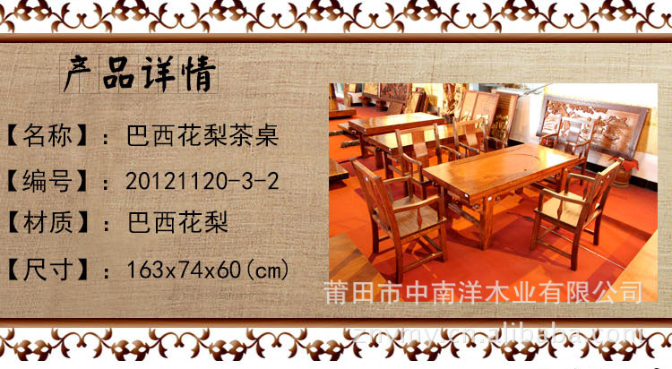 巴花茶桌六件套 原木大板 独板 实木茶几茶椅 现货 20121120-3-2