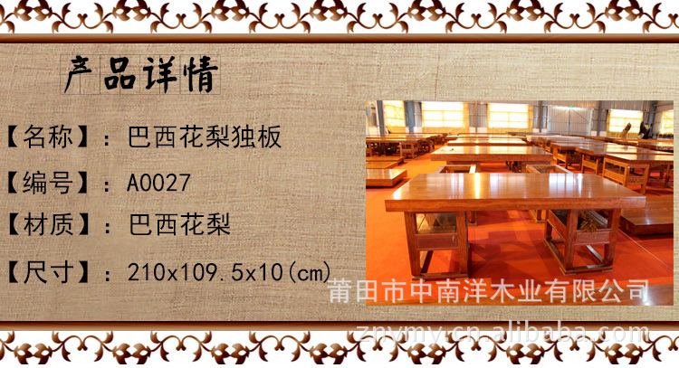 吾家王府 巴西花梨大板实木家具 原木大板 茶桌餐桌画案吧台A0027