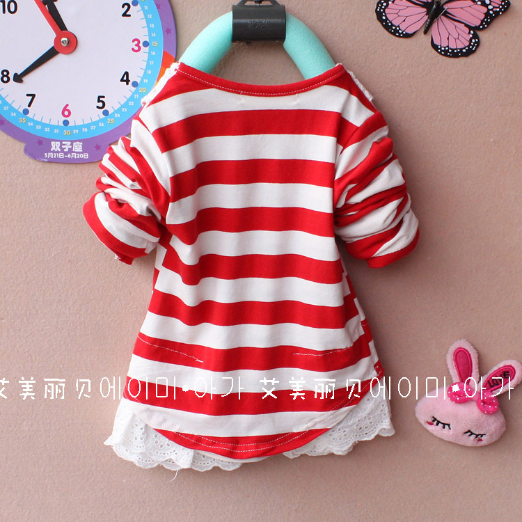 2013春装上新 品牌童装 韩版男女童条纹花边领T恤 syl1302 1-3岁
