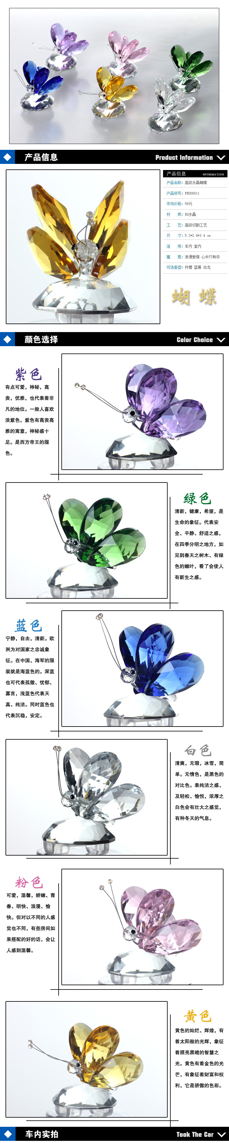 高档水晶蝴蝶汽车出风口香水 水晶汽车香水 多款颜色 盒装