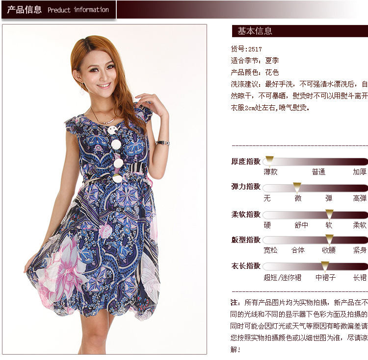 2517#供应中高档连衣裙市场 韩版连衣裙 时尚夏款连衣裙 雪纺