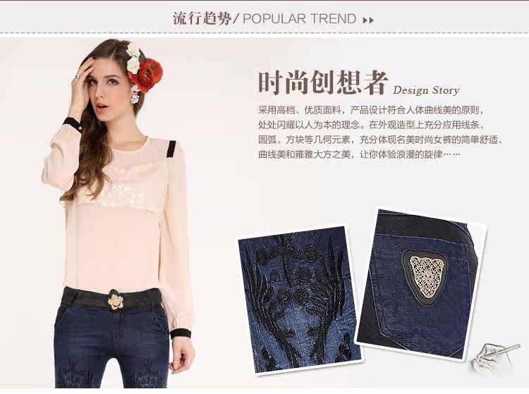 名美2013春夏季时尚牛仔裤女小脚裤铅笔裤女裤大码显瘦长裤子3025